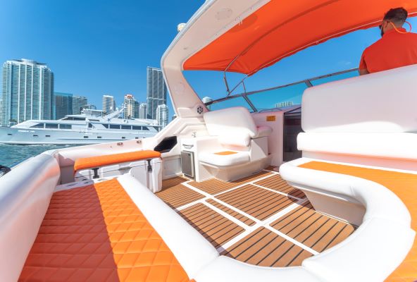 Introducing "Main Mistress," a one-of-a-kind Sea Ray 45' Express that stands out in the seas with its vibrant and unique orange hue. This yacht is a symbol of adventure and style, perfect for those who desire a maritime experience that's as bold and distinctive as they are.